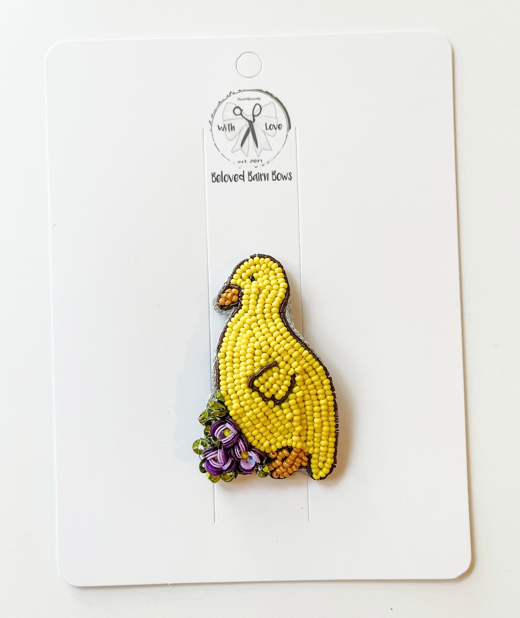 Each clip is hand embroidered on an embroidery hoop and finished with felt backing and a snap clip for a firm hold. Measured about 2.5” long.