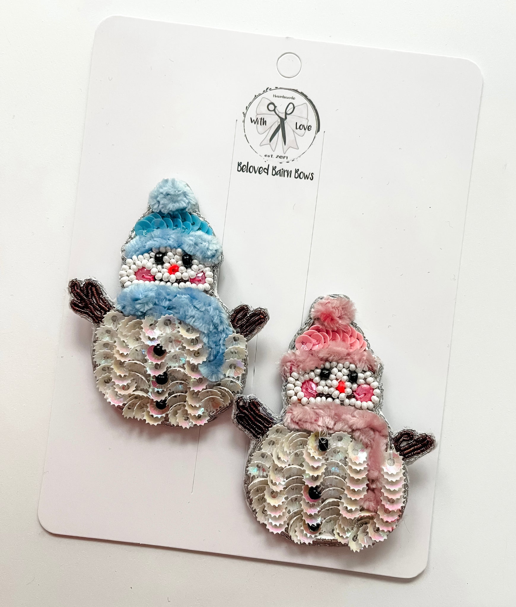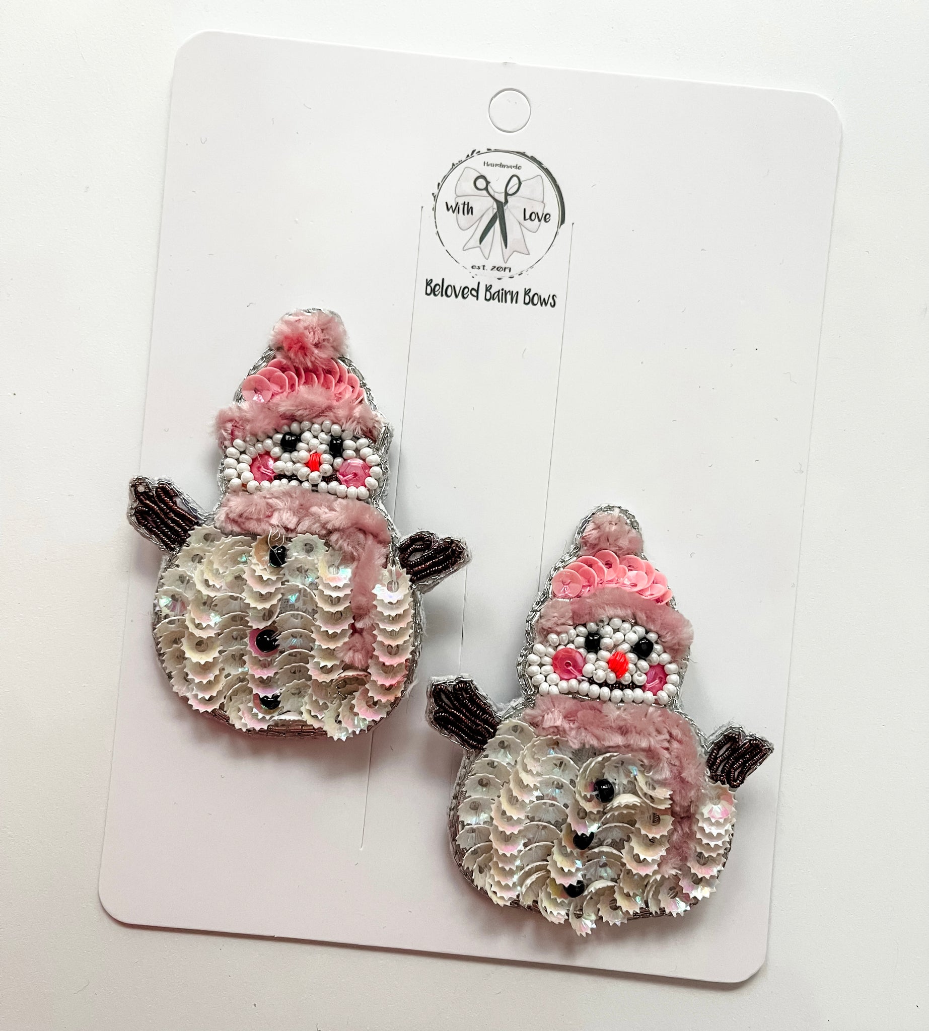 Each hand beaded clip measures about 2.5” tall and comes on snap clip.
